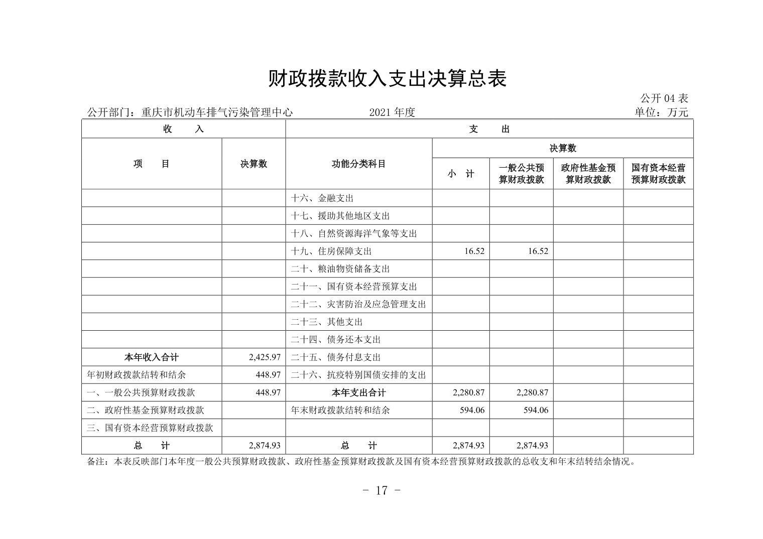 重庆市机动车排气污染管理中心2021年度部门决算情况说明
